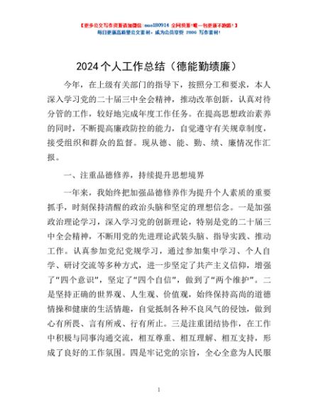 / 2024个人工作总结(德能勤绩廉)