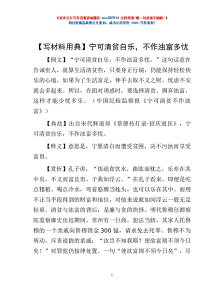 / 【写材料用典】宁可清贫自乐,不作浊富多忧