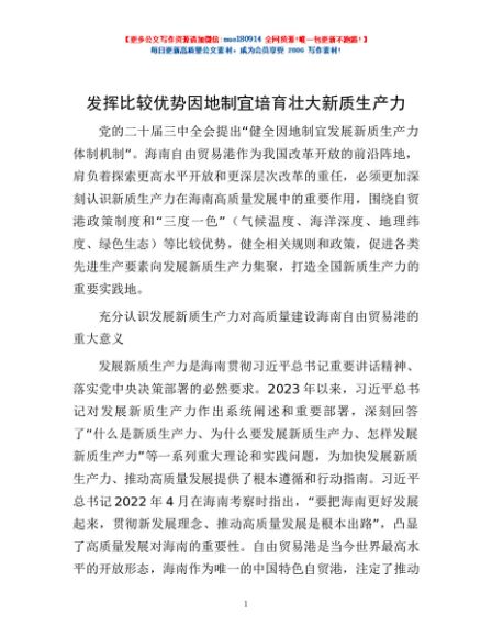 / 发挥比较优势因地制宜培育壮大新质生产力