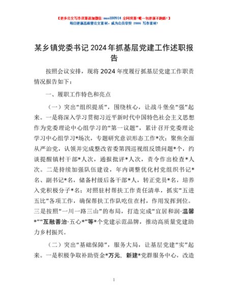 / 某乡镇党委书记2024年抓基层党建工作述职报告