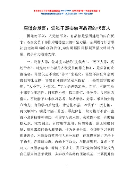 / 题-座谈会发言:党员干部要做有品德的代言人