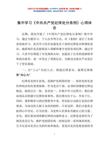 / 集中学习《中共共产党纪律处分条例》心得体会