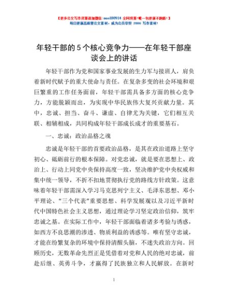 / 年轻干部的5个核心竞争力——在年轻干部座谈会上的讲话