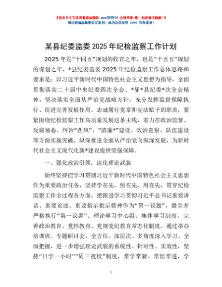 / 某县纪委监委2025年纪检监察工作计划