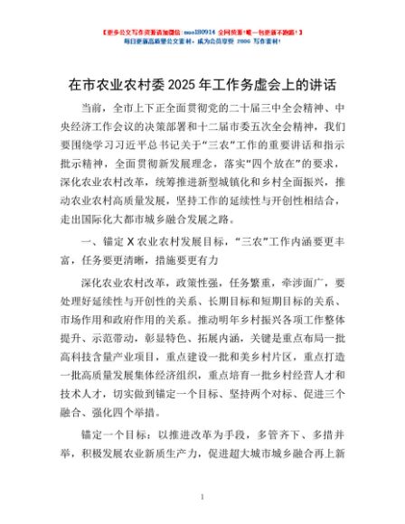 / 在市农业农村委2025年工作务虚会上的讲话