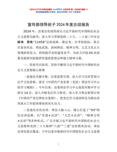 / 宣传部领导班子2024年度总结报告