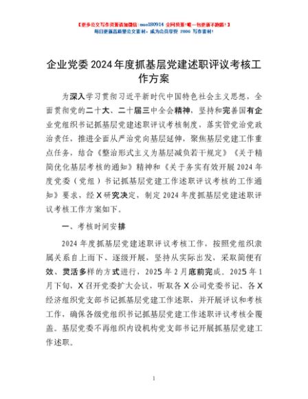 / 企业党委2024年度抓基层党建述职评议考核工作方案