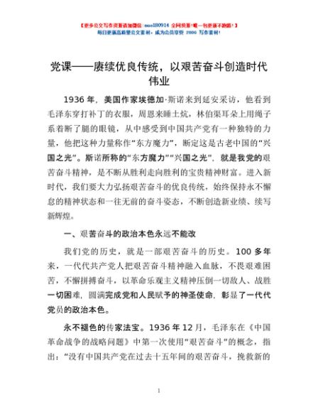 / 党课——赓续优良传统,以艰苦奋斗创造时代伟业