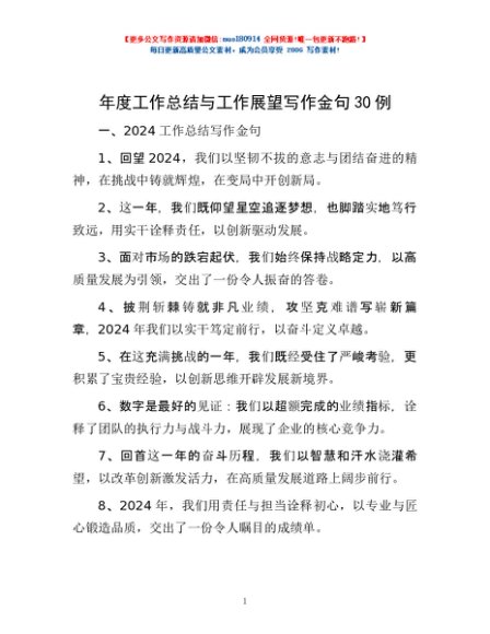 / 年度工作总结与工作展望写作金句30例
