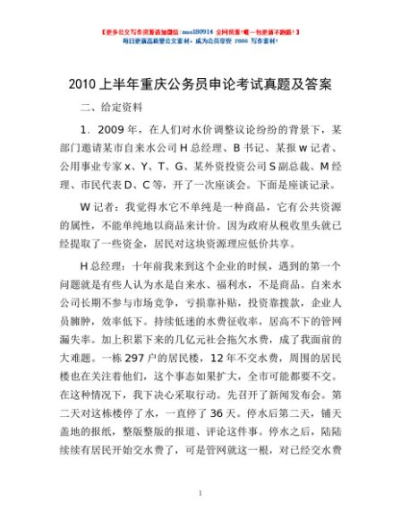 2010上半年重庆公务员申论考试真题及答案