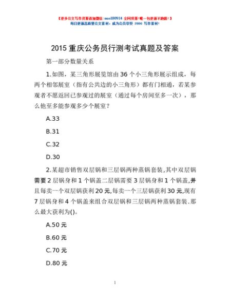 2015重庆公务员行测考试真题及答案