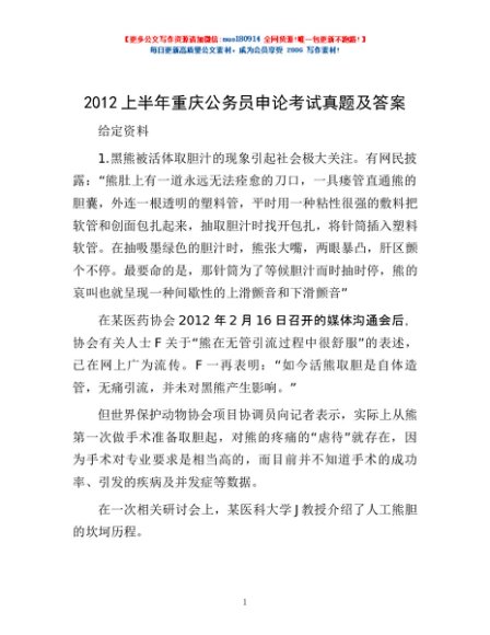 2012上半年重庆公务员申论考试真题及答案