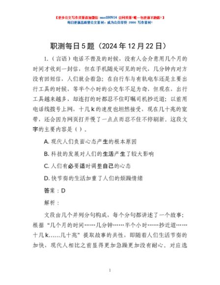 / 职测每日5题(2024年12月22日)