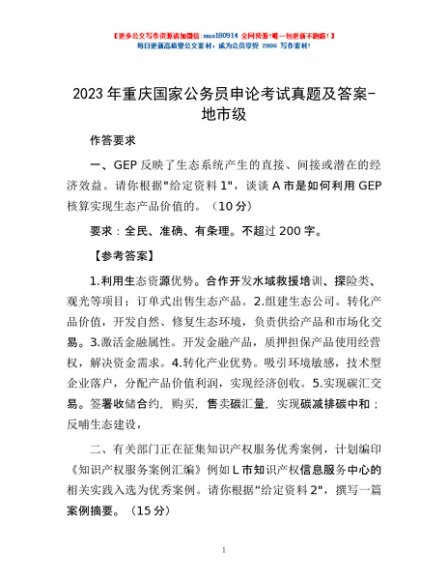 / 2023年重庆国家公务员申论考试真题及答案-地市级