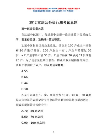 2012重庆公务员行测考试真题