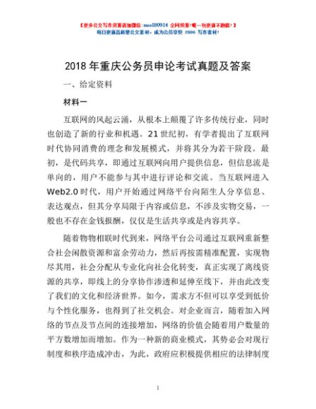 / 2018年重庆公务员申论考试真题及答案