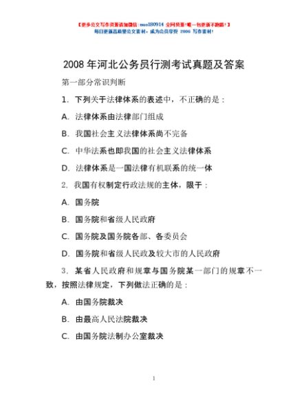 2008年河北公务员行测考试真题及答案