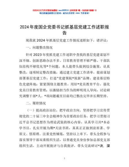 / 2024年度国企党委书记抓基层党建工作述职报告
