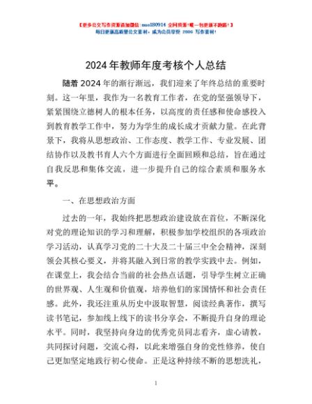 / 2024年教师年度考核个人总结