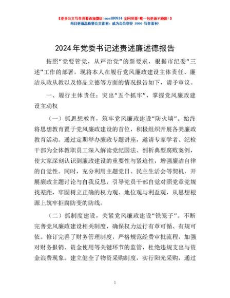 / 2024年党委书记述责述廉述德报告