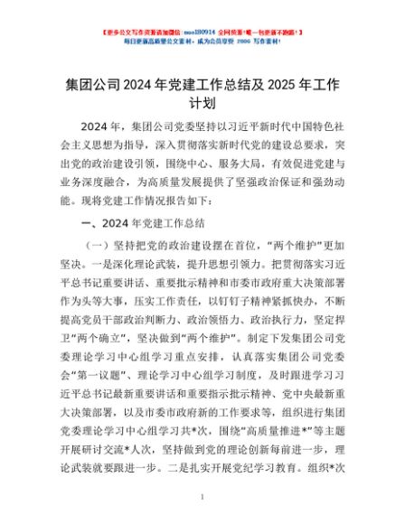 / 集团公司2024年党建工作总结及2025年工作计划