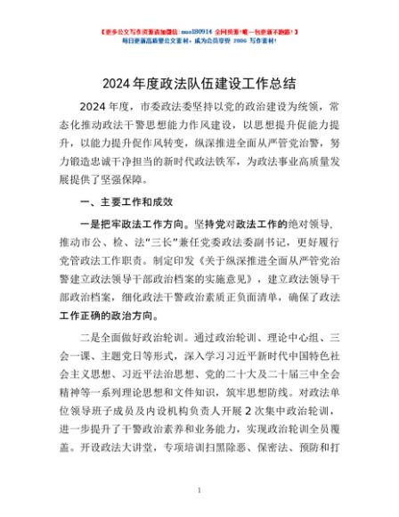 / 2024年度政法队伍建设工作总结