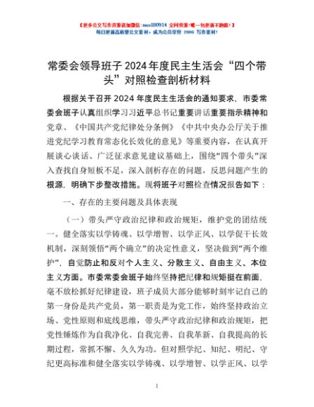 / 常委会领导班子2024年度民主生活会“四个带头”对照检查剖析材料