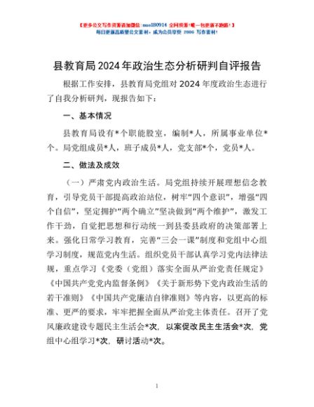 / 县教育局2024年政治生态分析研判自评报告