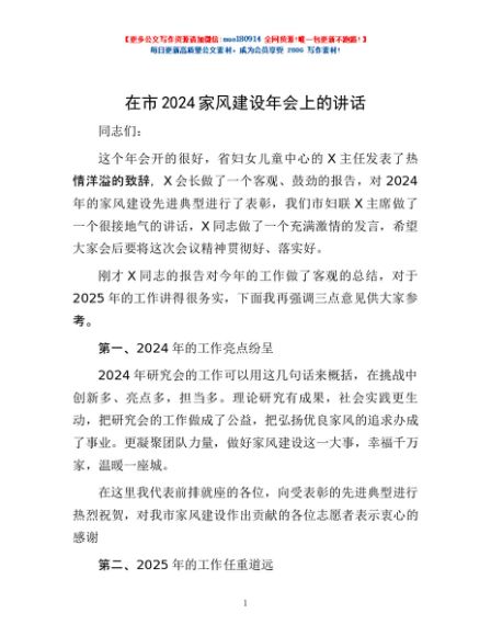 / 在市2024家风建设年会上的讲话