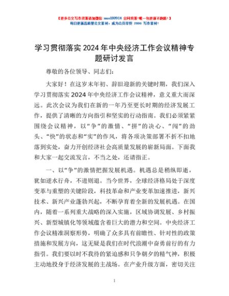 / 学习贯彻落实2024年中央经济工作会议精神专题研讨发言
