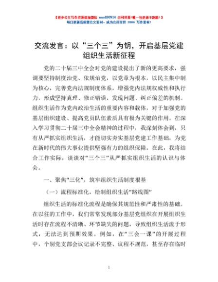 / 交流发言:以“三个三”为钥,开启基层党建组织生活新征程