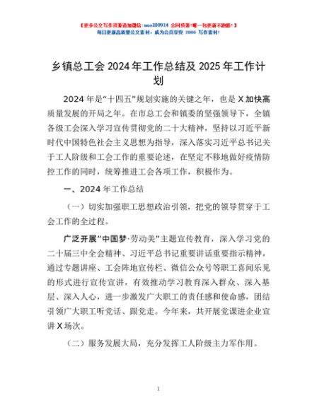 / 乡镇总工会2024年工作总结及2025年工作计划