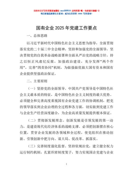 / 国有企业2025年党建工作要点