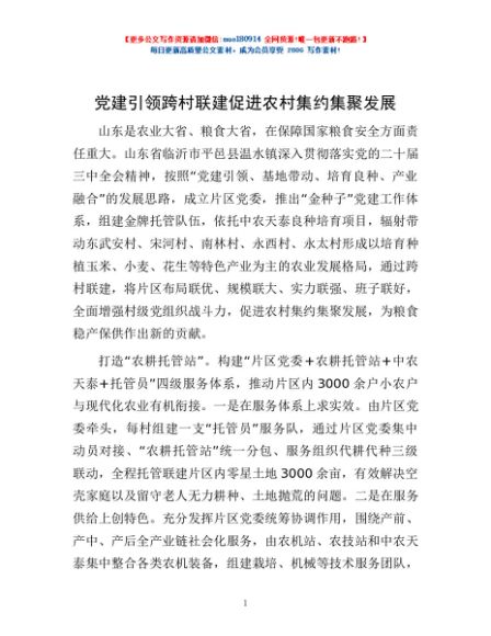 / 党建引领跨村联建促进农村集约集聚发展