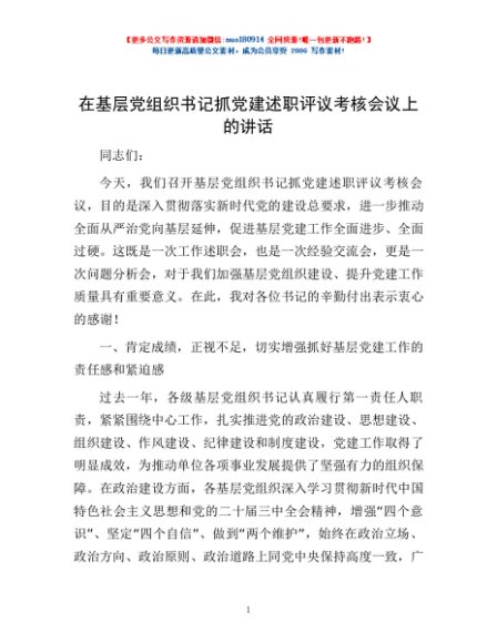/ 在基层党组织书记抓党建述职评议考核会议上的讲话