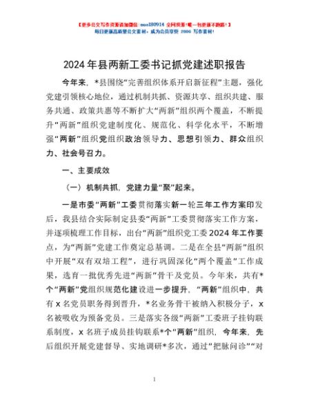 / 2024年县两新工委书记抓党建述职报告