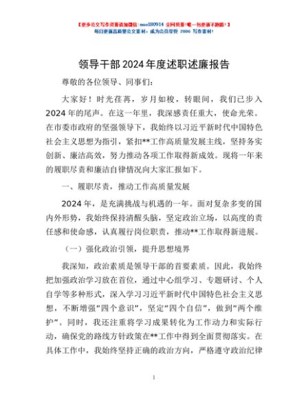 / 领导干部2024年度述职述廉报告