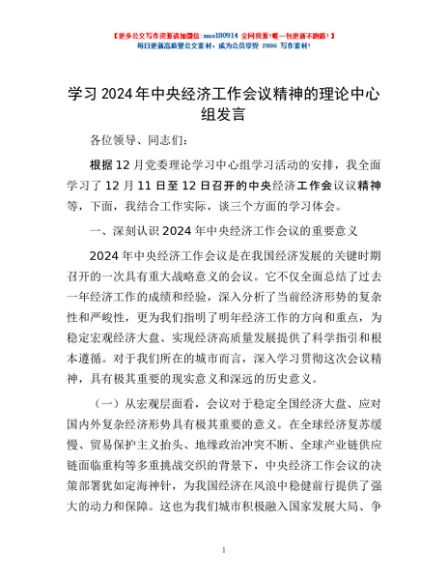 / 学习2024年中央经济工作会议精神的理论中心组发言
