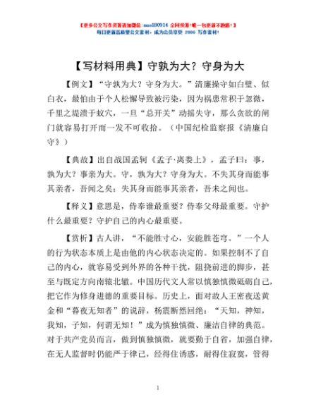 / 【写材料用典】守孰为大?守身为大