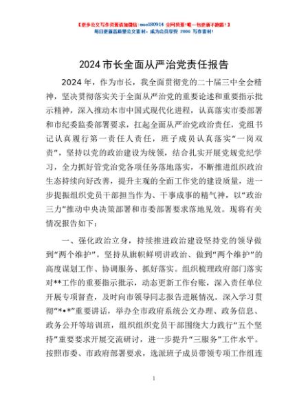 / 2024市长全面从严治党责任报告