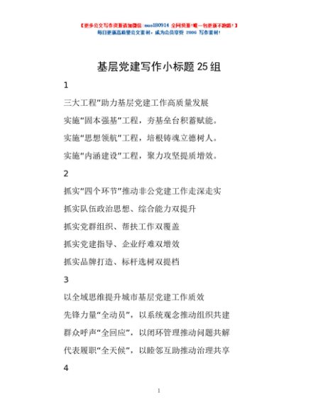 / 基层党建写作小标题25组
