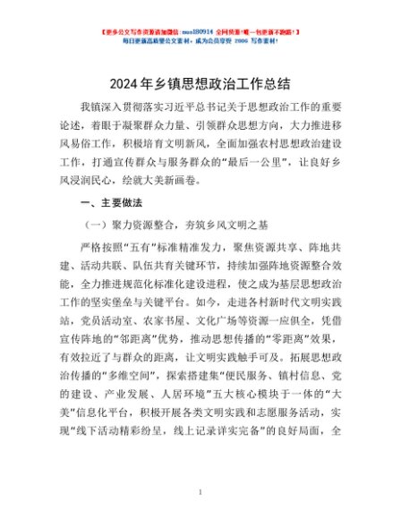 / 2024年乡镇思想政治工作总结