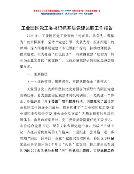 / 工业园区党工委书记抓基层党建述职工作报告