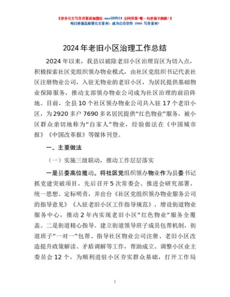 / 2024年老旧小区治理工作总结