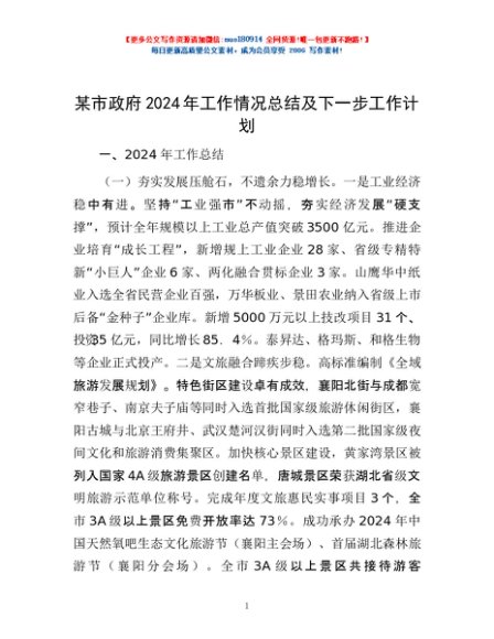/ 某市政府2024年工作情况总结及下一步工作计划