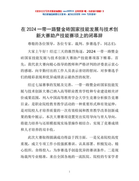 / 在2024一带一路暨金砖国家技能发展与技术创新大赛助产技能赛项上的闭幕辞