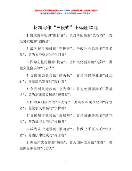 / 材料写作“三段式”小标题30组