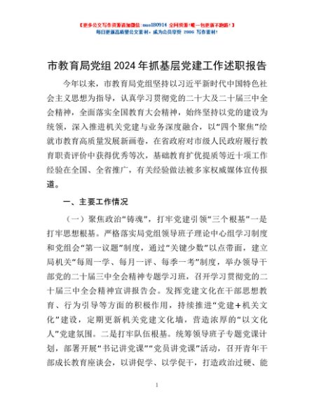 / 市教育局党组2024年抓基层党建工作述职报告