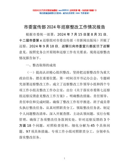 / 市委宣传部2024年巡察整改工作情况报告