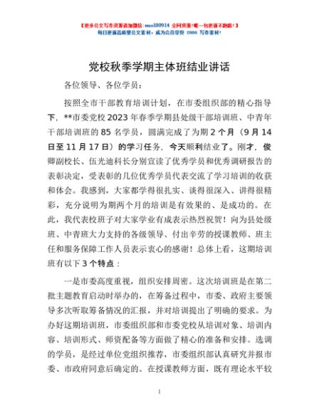 / 党校秋季学期主体班结业讲话